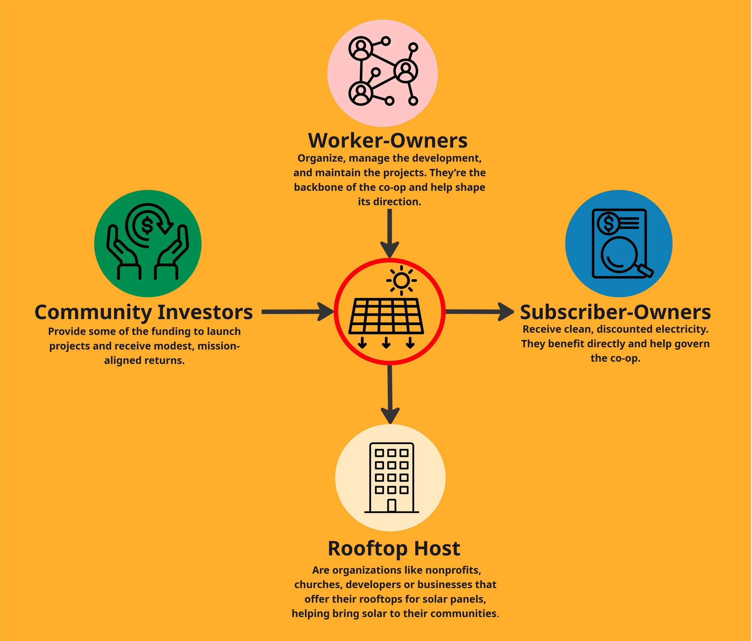 5. Profits Stay in the Community. Surplus revenue is shared among worker-owners or reinvested locally. No outside corporate owners—just community-driven solar for the long haul.
